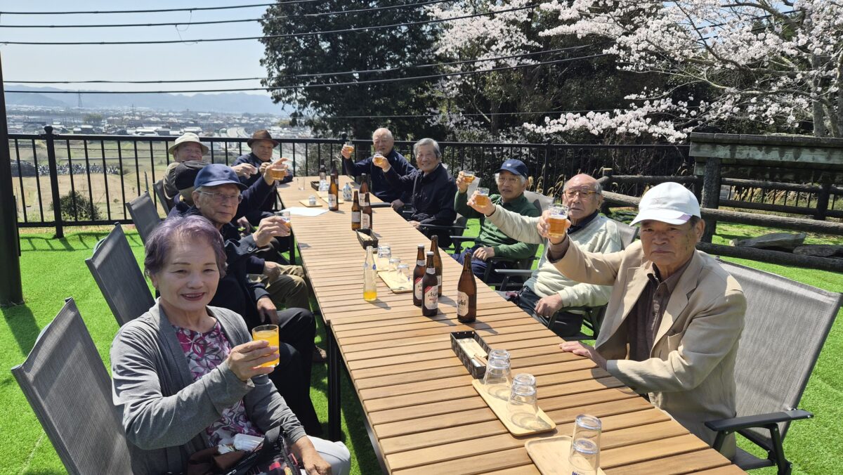 文珠荘のお花見弁当とビールや熱燗! 楽しんでくれていました!!!